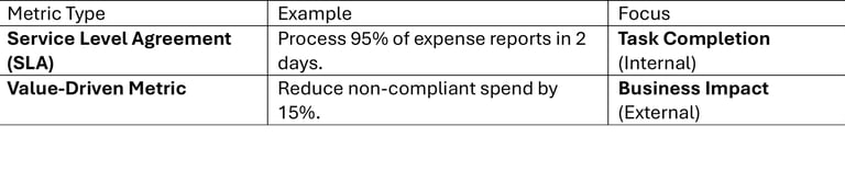 The second failure point is a lack of clear goals. Leadership often communicates success through Service Level Agreements (SLAs), such as "process 98% of invoices within 30 days." While measurable, an SLA is not a strategic outcome. It is a task metric. A true outcome is tied to business value, like "improve working capital by reducing DSO by 5 days."