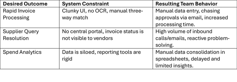 The system actively works against the strategic intent. No amount of team motivation can fix a tool that is not built for the job.